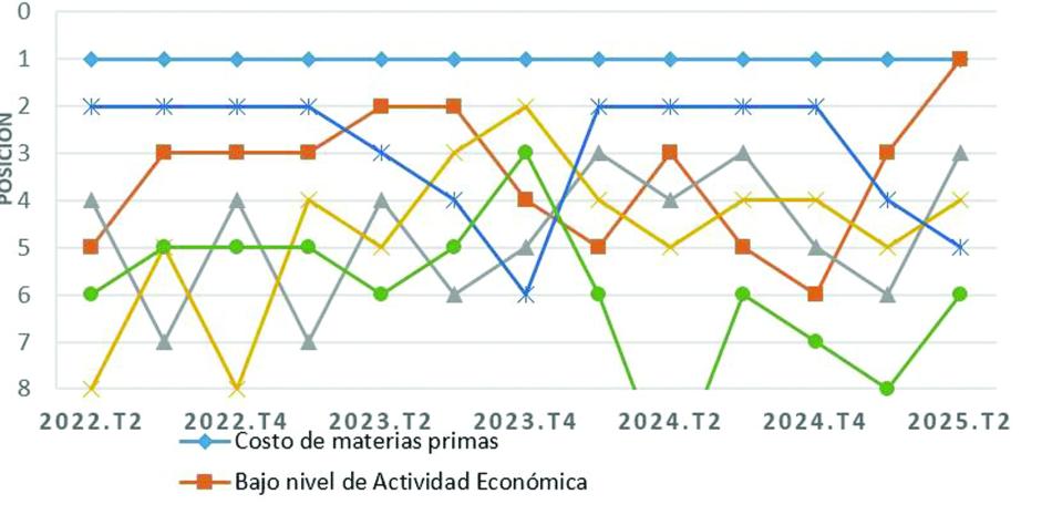 En el segundo trimestre de este año (abril-junio 2025), los factores que más afectaron la competitividad de la industria fueron el costo de las materias primas, el bajo nivel de actividad económica y la carga tributaria, según el “Ranking de factores que afectan la competitividad”, establecido trimestralmente en la Encuesta de Coyuntura Industrial.