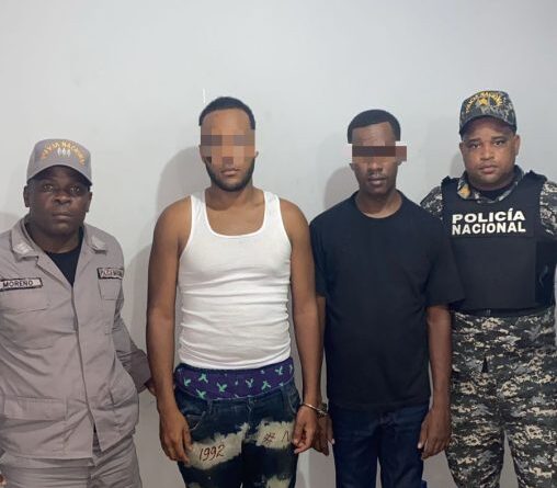 Agentes policiales adscritos a la Dirección Regional Santo Domingo Norte, con base en la provincia Monte Plata, apresaron en flagrante delito a dos hombres que se desplazaban de manera sospechosa a bordo de una yipeta marca Honda CR-V, color blanco en las inmediaciones de la calle principal del municipio Peralvillo.