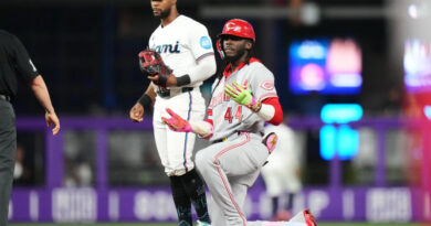 El relevista dominicano Miguel Castro  salió de un atolladero en el octavo inning, gracias a una fantástica atrapada de Ruiz. Con corredores en las esquinas sin out, el quisqueyano permitió sólo una carrera en un sencillo productor de Andrew Knapp que acercó 5-4 a Phillies.
