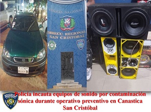 Policía incauta equipos de sonido por contaminación sónica durante operativo preventivo en Canastica San Cristóbal