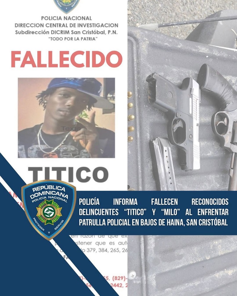 Los antisociales fueron identificados únicamente por sus apodos “Titico” y “Milo”, quienes, de acuerdo con el informe policial, enfrentaron con armas de fuego a miembros de la Subdirección Regional de Investigación (DICRIM), adscritos a la División de Investigación de Bajos de Haina.