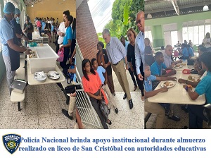 Policía Nacional brinda apoyo institucional durante almuerzo realizado en liceo de San Cristóbal con autoridades educativas