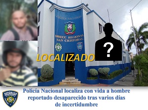 San Cristóbal, R.D., 17 de octubre de 2025.– La Dirección Regional San Cristóbal de la Policía Nacional, en su compromiso de velar por la seguridad y el bienestar ciudadano, informa la localización con vida del nombrado Yonatan Alexander De Jesús Martínez, quien había sido reportado como desaparecido el pasado 11 de octubre del presente año.
