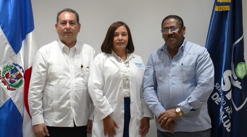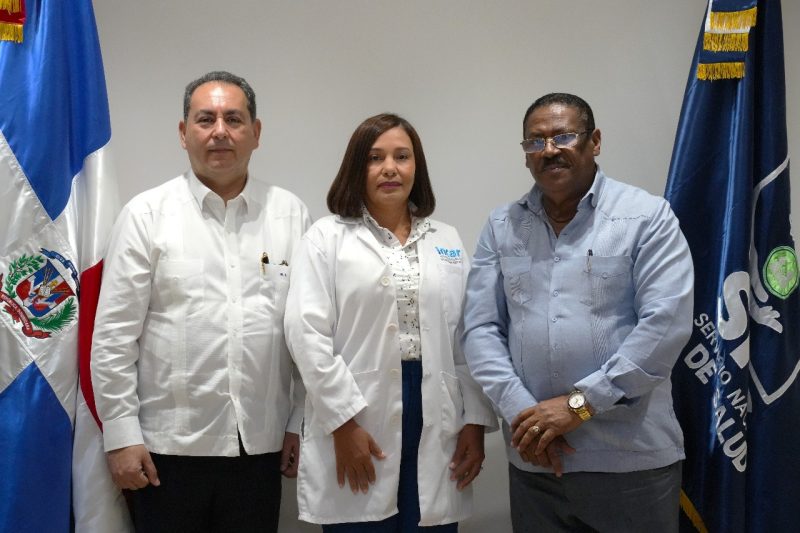 El titular del Servicio Nacional de Salud, doctor Mario Lama, junto al director de la regional Ozama, doctor Edisson Feliz juramentó este martes a la doctora Bianny Rodríguez Valdez como nueva directora del Instituto Nacional del Cáncer Rosa Emilia Sánchez Pérez de Tavares (Incart).